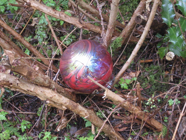 The beautiful glass float left in the garden by the wonderful Rhodes family–who knew I had given up looking for a float on the beach.