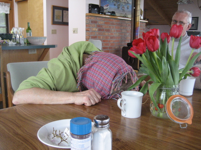 The traveling bouquet and Irene’s nap at brunch.