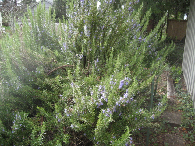 The future mosaic at Carol’s and the happy rosemary plant.