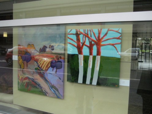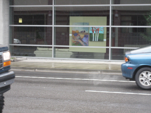 I nearly rear-ended somebody Saturday when I was driving along and saw they’d moved my painting in the Mayor’s Invitational Show at the Conference Center–putting it in the window. It’s not what I’m doing now but it looked sort of sweet with it’s horizon line matched with Paul Strauch’s painting. Check it out, as Randy Jackson would say. Except he’d say “check it out Dawg”.