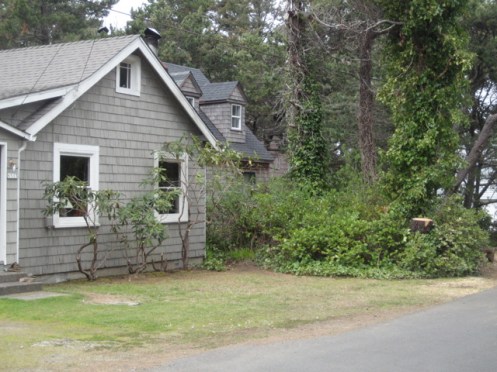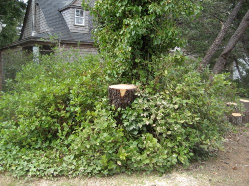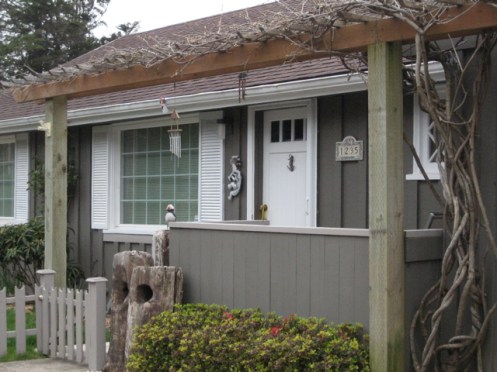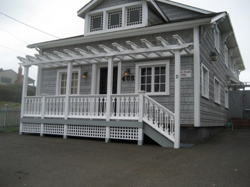 We arrived at the beach to discover the city had cut down the damaged tree, ravaged in the December storms. Our plain little cottage needs some visual interest so we wandered up and down the edge looking for pergolas.