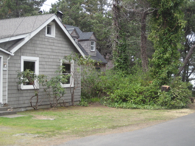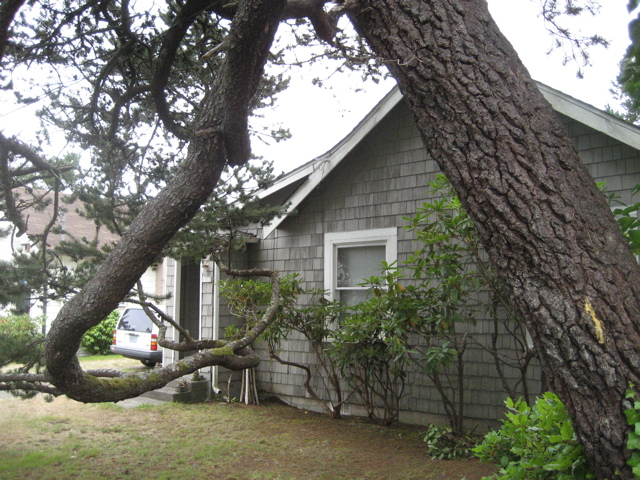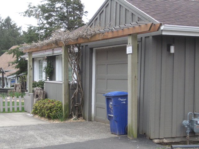 We arrived at the beach to discover the city had cut down the damaged tree, ravaged in the December storms. Our plain little cottage needs some visual interest so we wandered up and down the edge looking for pergolas.