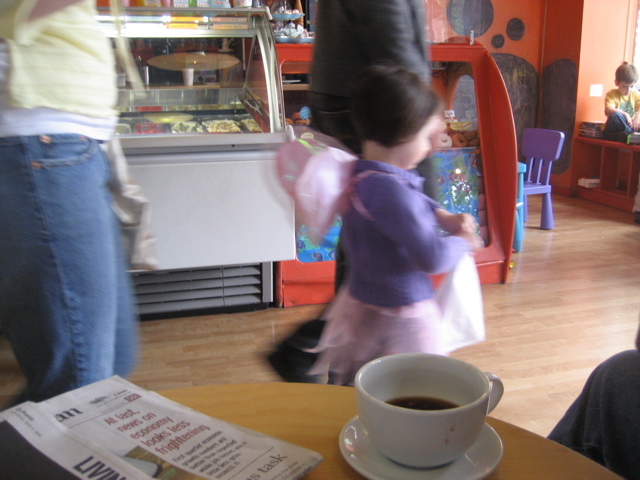 Coffee and a small fairy May 6, 2008May 6, 2008bonniehull We were only in Portland 14 hours but we got in two coffees and ran into a small fairy with a sack of fresh donuts: Share this: Share on Facebook (Opens in new window) Facebook More Email a link to a friend (Opens in new window) Email Like Loading... Related