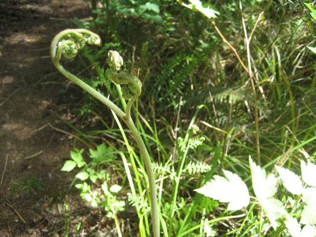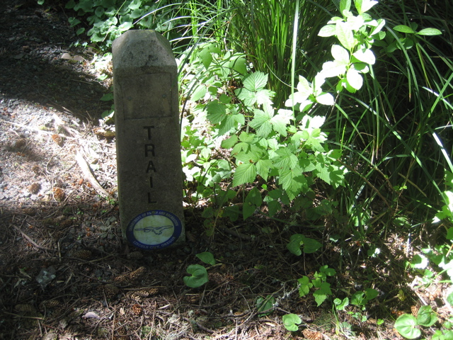 Here’s the entrance to the trail and some Maiathemum dilatatum, wild lilies of the valley.