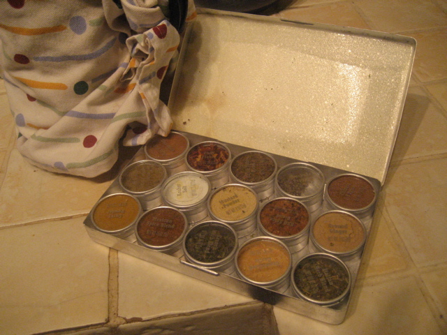 Last food note: Carol brought a terrific little kit that turned out to be pretty handy–a travelling spice kit: