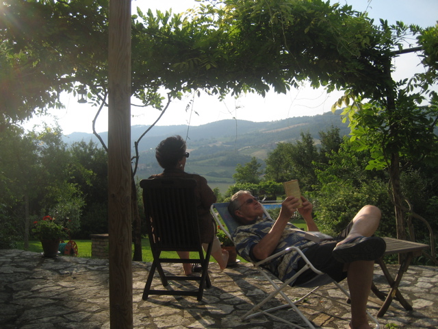Jim and Carol relax on the terrace.