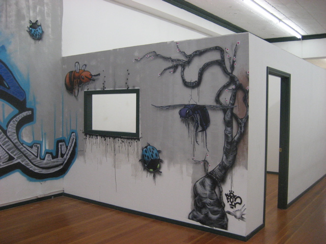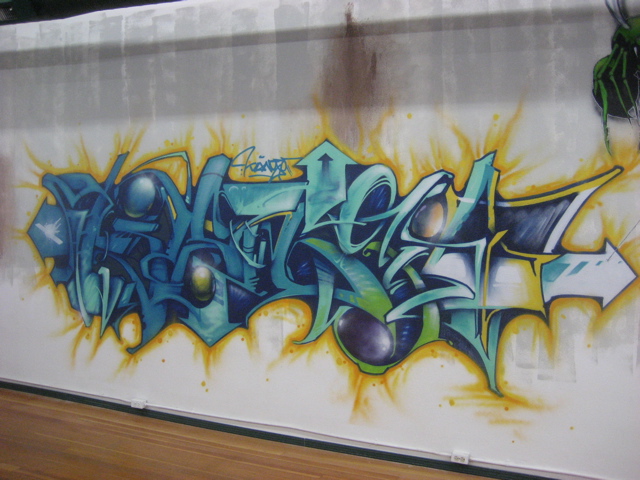 but luckily I don’t always have my camera. Tonight is the opening for the new two week show featuring the work of 5 graffiti artists who painted on the wall. It has been a lively addition with a whole new group of people stopping in to comment. Tonight there will be dancing, music, and art.