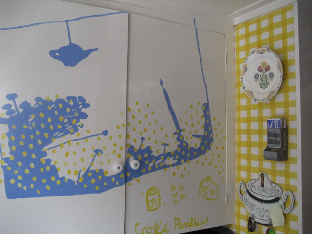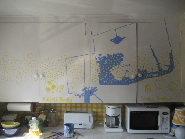 Oops.  Think I’m going to have to paint out the blue lines above the cupboard doors.  What do you guys think??
