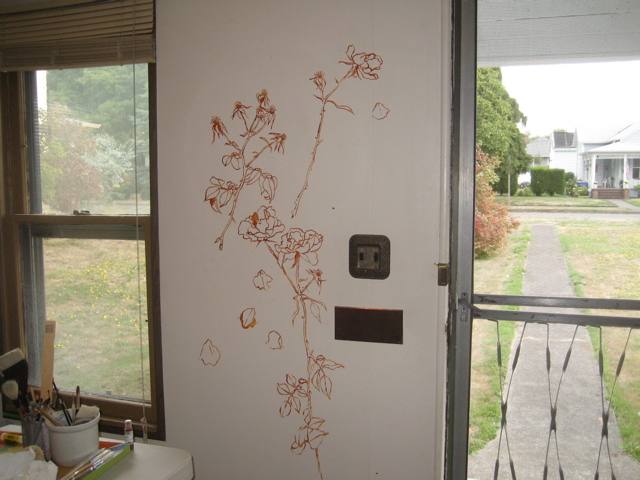 Wall Flowers September 30, 2008September 30, 2008bonniehull The roses by the studio door are still blooming. Hurt my knee this weekend and can’t do much, so decided to paint the roses onto the wall: Share this: Click to share on Facebook (Opens in new window) Facebook More Click to email a link to a friend (Opens in new window) Email Like Loading... Related
