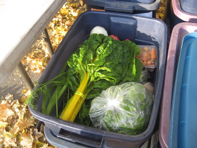 I’ve become a strong supporter of the “CSA” movement over the last couple of years. This year the season was 26 weeks, this week was week 23. Each week a truck parks for a couple of hours across the street from our house, downloading the many boxes for subscribers. Along with the box comes a sheet with recipes and comments from the wonderful farmers Tom and Elizabeth Denison. The idea is that you pay at the beginning so the Denisons get their money up front, then having not to borrow from banks, etc. There are over 400 subscribers in about a 60 miles radius, and the Denisons also sell to markets and work the farmer’s market circuit. The produce has been wonderful and we’re already feeling sad to see the season end. Our meal planning is now based around “the box”.