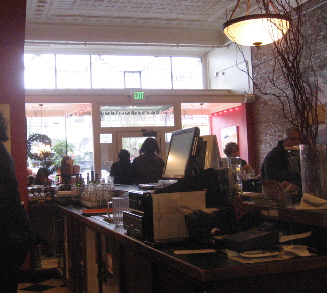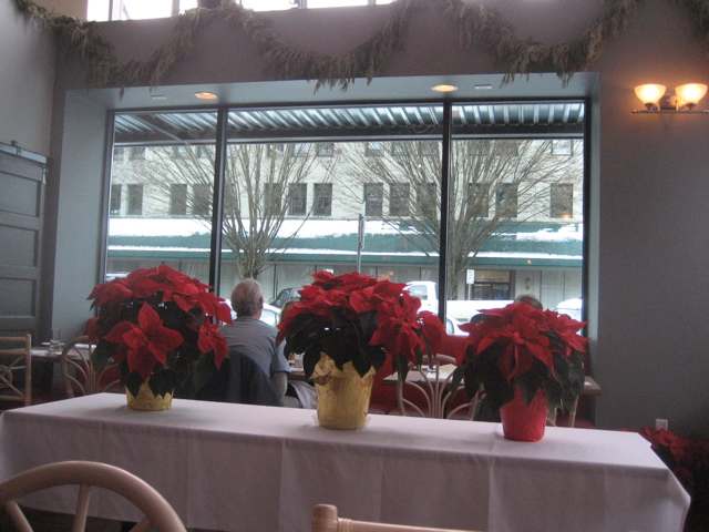 Lunch break at Le Capitale–new French bistro.  I forgot to photo my DELICIOUS lunch (smoked salmon and greens on a potato pancake with aioli–a small and utterly satisfying plate.  The corner of State and High Streets.