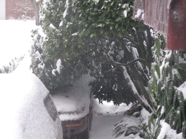 And now the new challenge.  The camellia has fallen on to the car.  We need toilet paper and wine and protein.  An adventure lies ahead.
