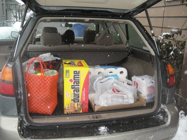 We got the car out, we went to the Safeway with 4-wheel-drive-Gloria, fortification arrived from friends returning from England. The food is made and the temperature is rising. I for one am looking forward to the gleaming Oregon green. But….it WAS beautiful