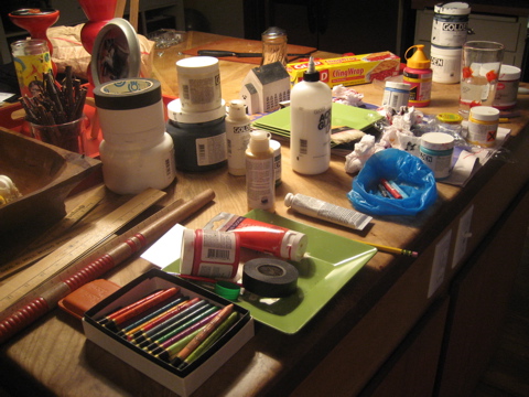 She’s kind of a cottage industry these days–the whole kitchen is the workshop