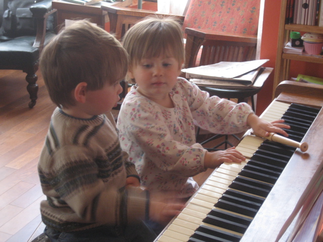 They have the four-hand piano piece worked out and now are working on a recorder duet.