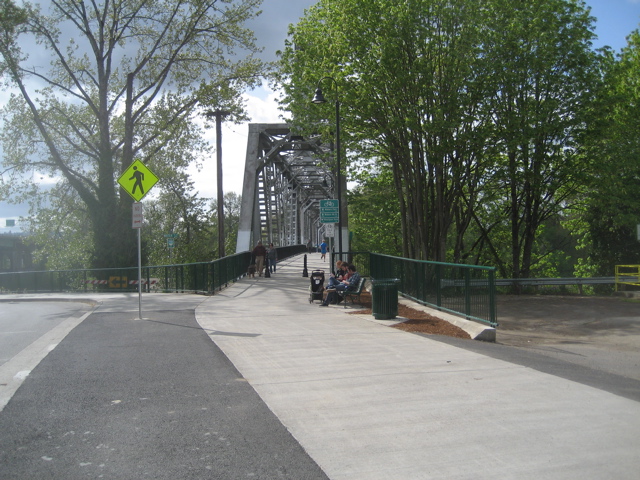 So we went to see the railroad bridge which opened officially last weekend as a pedestrian bridge connecting Salem and West Salem.  It’s the old bridge with new concrete decking,