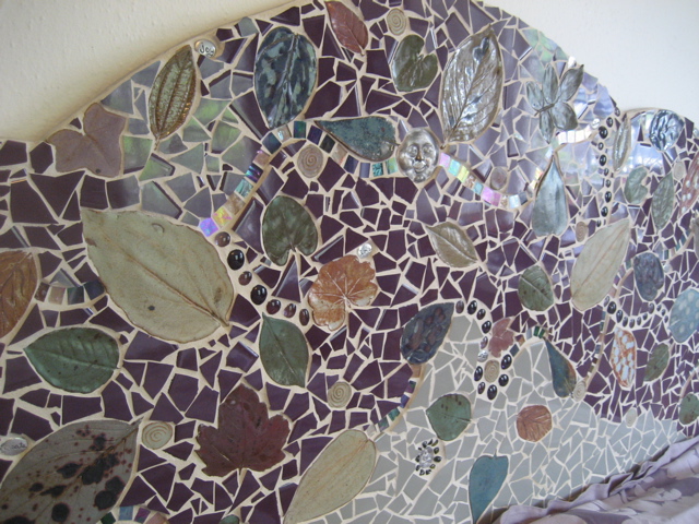 Deep saturated color for the most part, whimsy, movement.  She’s done a lot of health care related things in the past few years including a newly completed mosaic (with her friend Wendy) at the hospital: