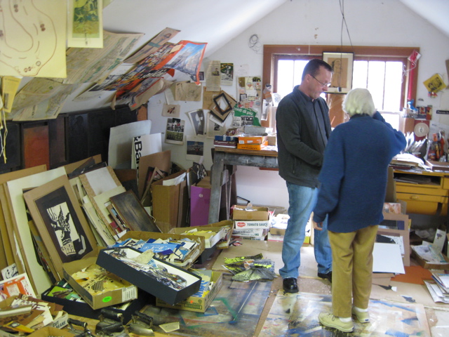 Eunice, 12X16 Gallery director Cary Doucette and Roger first looked through work in Eunice’s front room before going up to the studio.