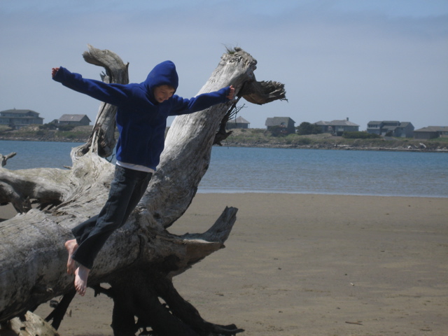 Fin leaps from a log