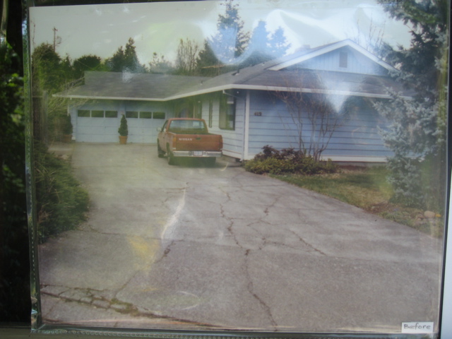 He jack-hammered up some of the concrete to make part of the driveway look like stepping stones: