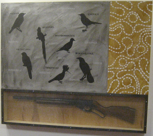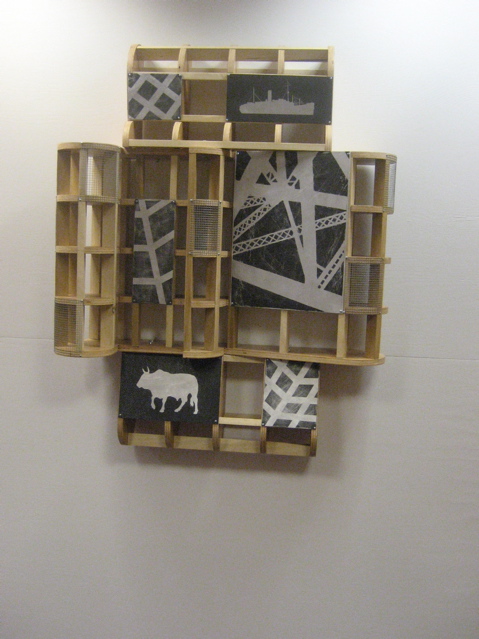 The main floor room is filled with the sculputre-construction-painting of Andries Fourie–intriguing, crafted, they make you a little edgy (in a good way):