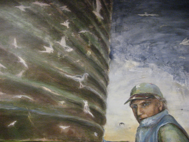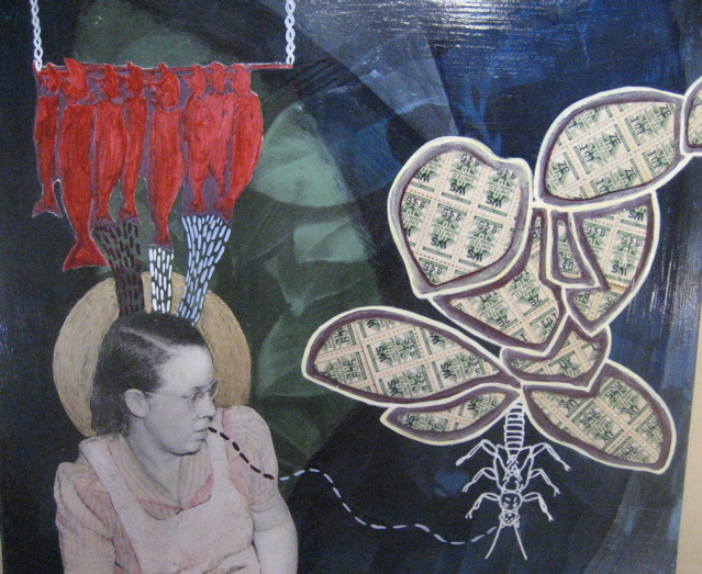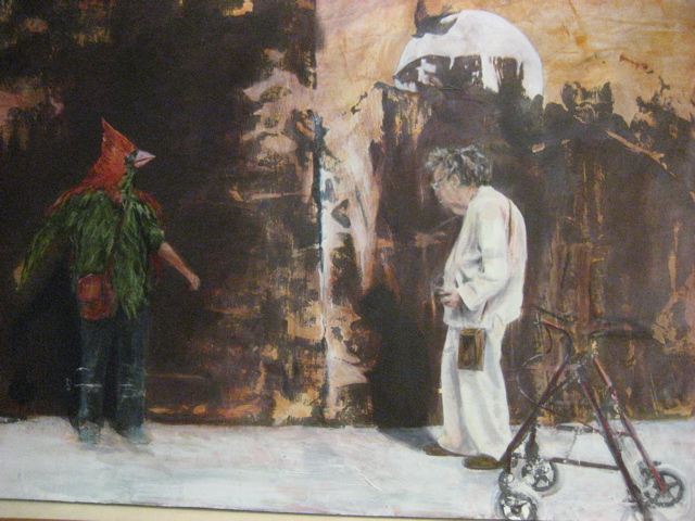 Corrie Loomis Dietz is showing big paintings which begin as photo transfers and imaginatively morph along the way: