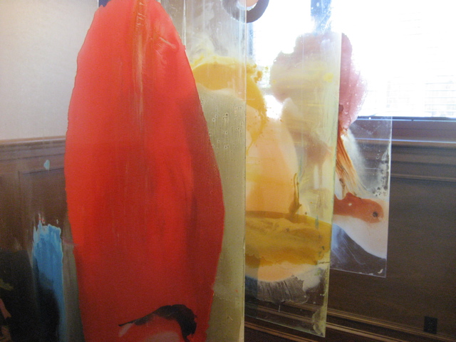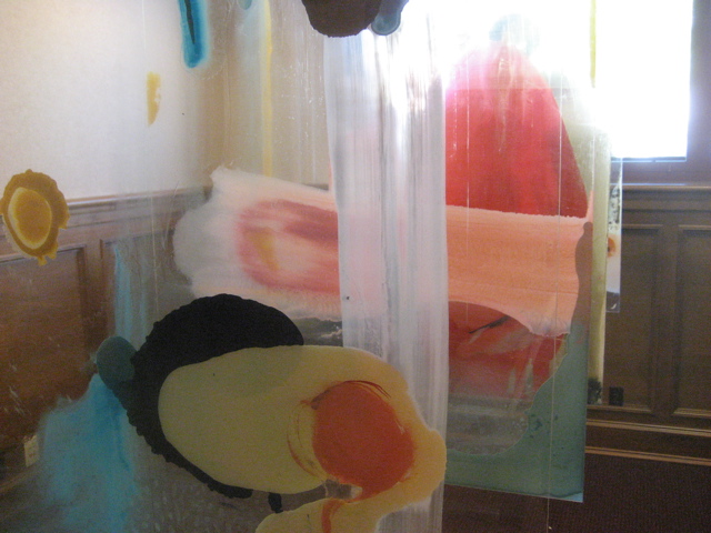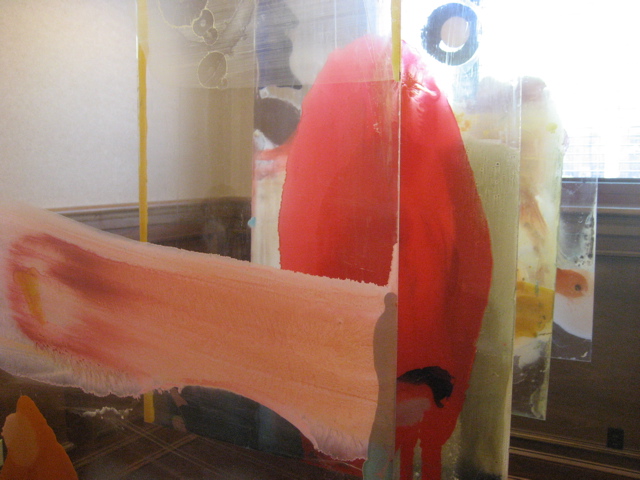 Jason Munana’s gorgeous veils of color on plexi fill another small room:
