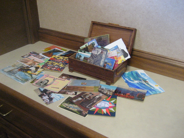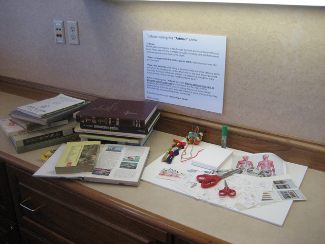 This week MaryLou Zeek has two rooms for a fun exhibition and viewer-involvement piece. In one room are her own postcards (photos to come) and in the other room are cards from artist friends
