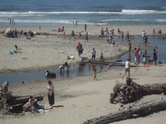 Last week it was 106 and 107 in the valley so many people were driven west to the beach, where it’s always cool. We went for a salmon caesar one day and looked out at this scene which looked like Coney Island to our western eyes: