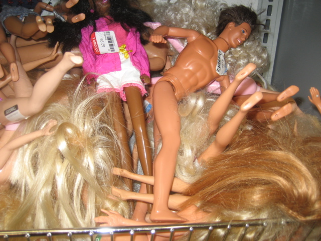 1. There is someone in Pt. Townsend who collected the Barbie clan and created circus acts by strangely bending, distorting, dismembering*, etc. the dolls into a macabre and mesmerizing diorama. This strange circus was once displayed in a store window–I never forgot it.