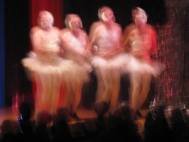 This coming weekend is an art extravaganza with several posts coming only about art. But before the sublime, the ridiculous. Here are some scenes from the Wallace, Idaho, event this summer. Slippery gulch is when the mayor and other guys dress in ballet costumes, etc. Swan Lake, etc. The place was packed and dark and everyone was moving so Roger’s pictures came out this way, but I thought they’d make a nice, mysterious, weird frieze.
