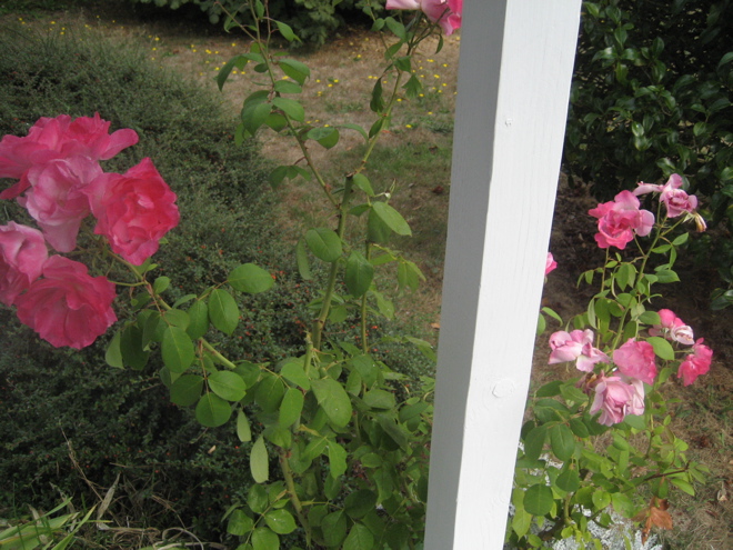 Well a year has passed at the Cottage Studio. What a good year for me and art making. The studio is for sale now and I’m thinking about moving on and what that will entail. The other day I took a picture of the roses by the front door to compare with the same roses last year: