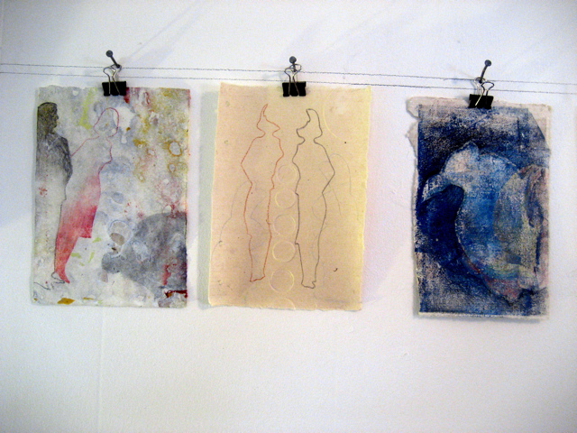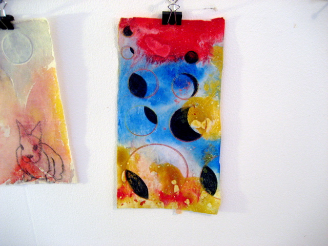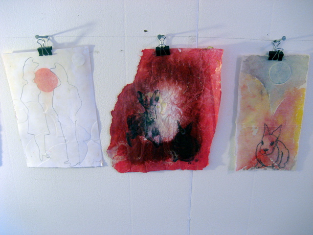 Loved the studio– full of color, texture, murmuring voices rippling around me as Adam and Even and a bunny alive in textures held my eye and mind and sommersaulting imagination. Sorry to crash, but neighbors do that, Bonnie.