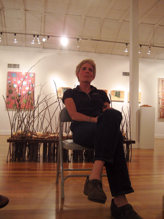 Kristin Kuhn’s nice show closes this weeked at Bush Barn Art Gallery and a few of a us gathered the other night to toast Kristin, look at the work and talk about the process. It was fun and fascinating: