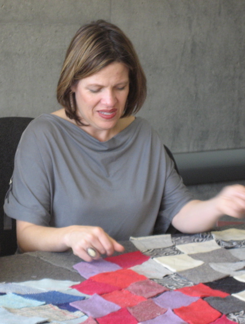 Today, though, I wasn’t there to attend the ceremony, but rather to join artist Marie Watt’s “sewing circle”. She is making two large fabric pieces which will hang in Ford Hall beginning in January. Today the Willamette community was able to join in the “making” process. In the age-old way we sat around sewing and talking and laughing and sewing. It was quite fun and the piece will be beautiful (Marie is on the far right):