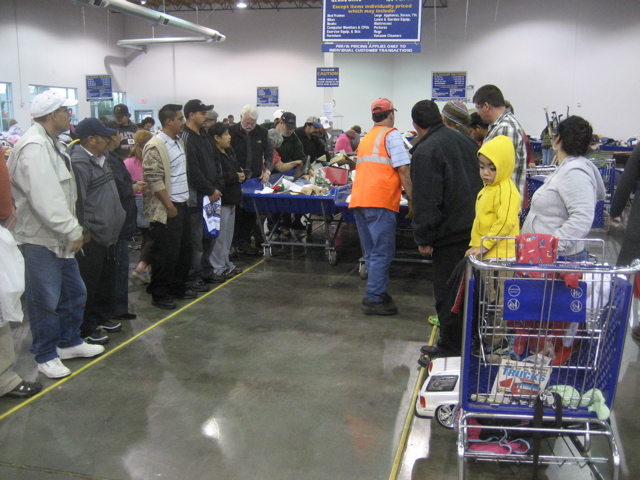 …and they all know the drill. Bins start to disappear and people start to line up. It WAS like some weird sporting event!! We couldn’t quite see what they were looking for–electronics maybe?