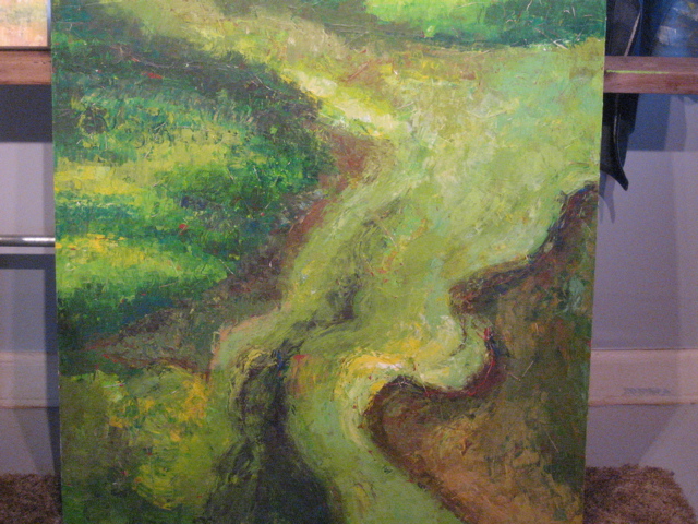 Landscape painter Cynthia Herron is a denizen of Minto and a runner/biker/dog lover and found the book. This summer Cynthia and Sharon met and then got together for coffee and talked about the park. Cynthia is preparing a show of paintings (she’s hoping 25 or 30) and the titles are quotes from Sharon’s book.