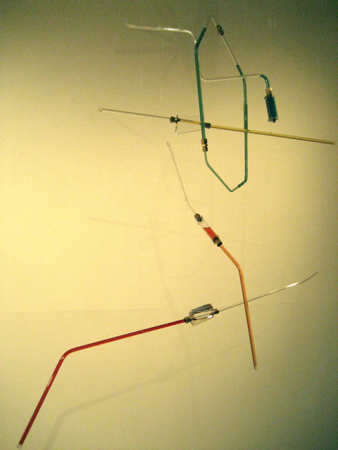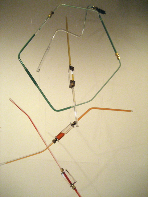 We stopped at Blackfish Gallery Sunday to see Steve Soihl and to watch his newest kinetic sculpture dance through its paces. A beautiful combination of clear tubing filled with various weights and colors of motor and machine oil, the parts twist and turn and move like a Malevich painting come to life. It’s on view until November 28th–go take a look: