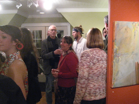 The crowd was interested and enthusiastic looking at both John and Rachel’s paintings (that’s Rachel with the red earring)
