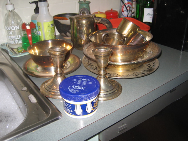 Thanksgiving might be my favorite holiday.  No gifts (hence no shopping), minimal decorating, three basic elements: food, family, friends.  Today I began to make the lists, think of the “sides” we’ll eat and enjoy, and polish the silver.  It wasn’t a pretty sight: