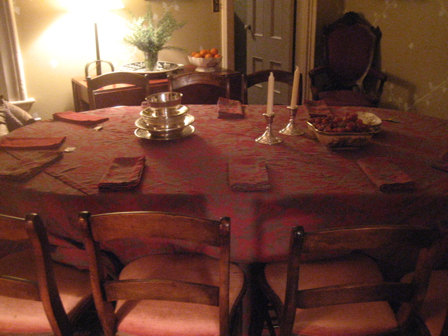 and while Zach and I chopped up about 300 vegetables, Roger put on the tablecloth and rounded up the chairs.
