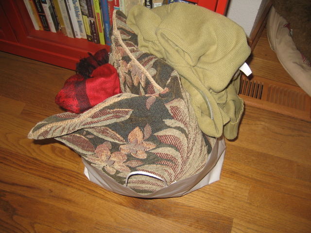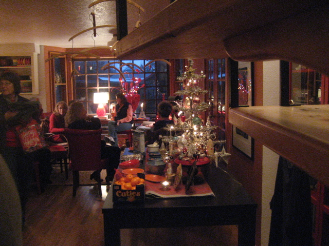 Here was a great idea. Kay has too much stuff and wanted to see her friends, so she put out tables of stuff, got together some goodies, and made some tea. A bunch of us converged and everybody went away with something (meanwhile, when Kay saw other people grab she began thinking hmmmm…..I want that back!! No Deal!!!) So now we can re-gift this stuff too!! (Though maybe this is a party for AFTER Christmas when you have another load of stuff???)