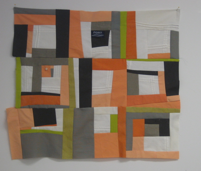 Sally had brought a piece of applique and she used Gwen’s “liberated triangle” method to build her piece: