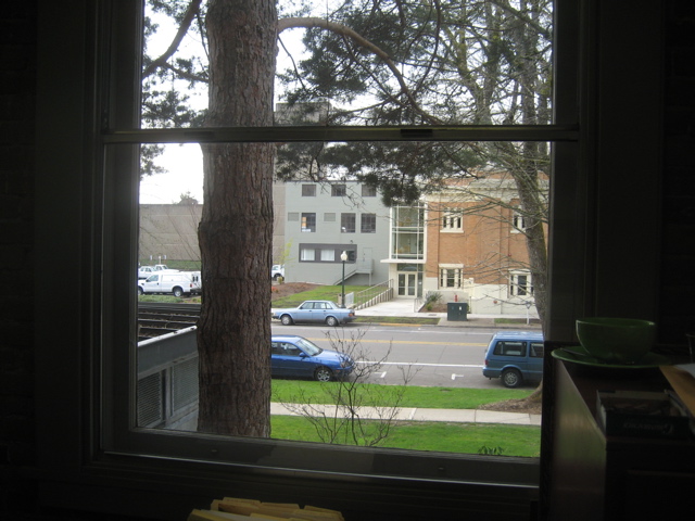 Since 1992 his office has been in the north west corner with views toward the Capitol building grounds to the north and the original Salem Carnegie Library (now the Justice Center for the College of Law) to the west.