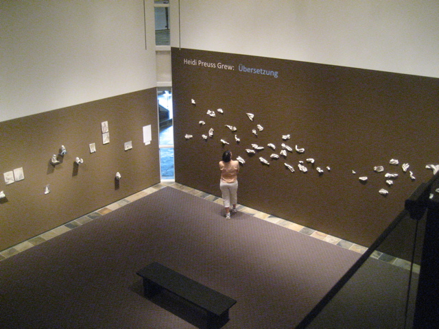 Last Friday was the opening of the senior student art majors at the university, and also of faculty member Heidi Preuss Grew (celebrating 11 years at Willamette), at the Hallie Ford Museum of Art. Heidi’s new porcelain work looks just great on this dark brown wall