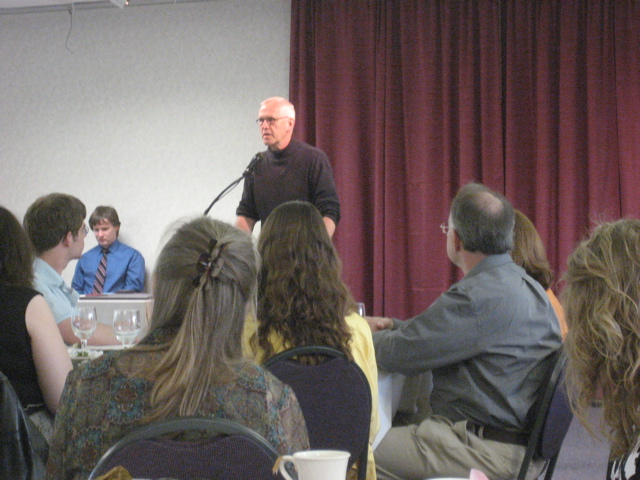 This blog is at (only) slight risk of becoming the Roger Hull PR department, but tomorrow is the last day of the HULLabaloo season. Graduation. After 40 hard years of work they’re allowing him to graduate at last. Today Roger was inducted into the Phi Beta Kappa honorary and gave a very interesting talk