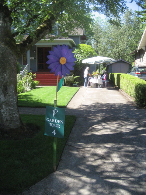 Our stop, stop number four, included four gardens of four neighbors that flow from one to another. The weeding, the cultivating, the planting…ALL done in the pouring rain in the weeks before the tour. The day though, was FESTIVE.