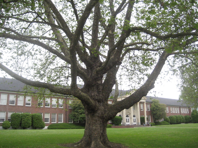 Yesterday Sharon and I were doing some preparatory file sifting as we begin the process of mounting a show next year at the Hallie Ford Museum of Art that will feature the drawings of Edith Schryver.  Schryver was one half of the landscape design team of Lord & Schryver, active in this region from 1928 through the 1960’s.  Elizabeth Lord was the plants-woman, together they worked out designs, and Schryver executed the drawings.  Lord had grown up in Salem while her father was the governor of Oregon, and her mother was a dedicated gardener.  She had a particular love of civic projects and the firm took on many local design projects.  I reported earlier on the plane trees arrayed around the Marion County Court House, and yesterday was reminded of another group of plane trees also planned by Lord and Schryver.