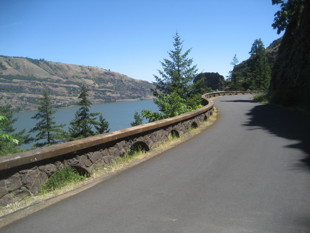 We were up in White Salmon over the weekend visiting Jennifer and George and Fanny and on Sunday we took a pretty stunning bike ride on the Oregon side…from Hood River to Mosier on the old Columbia RiverHwy built 1913-1922.  We rode up a “gentle incline” ( as per Jennifer…I almost collapsed, but if even I didn’t, it must not be too bad) took in the amazing Gorge views and zoomed downhill into Mosier where we had a nice coffee and got in the 4th of July mood.  Hint:  two cars are good, one at each end.  Take at look, and have a fun fourth of July: