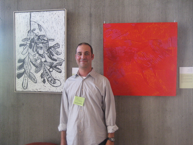 Purchase award went to Kristin Kuhns, here in front of her painting:
